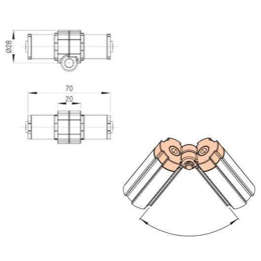 Angle external clamping folding joint AFU-28A