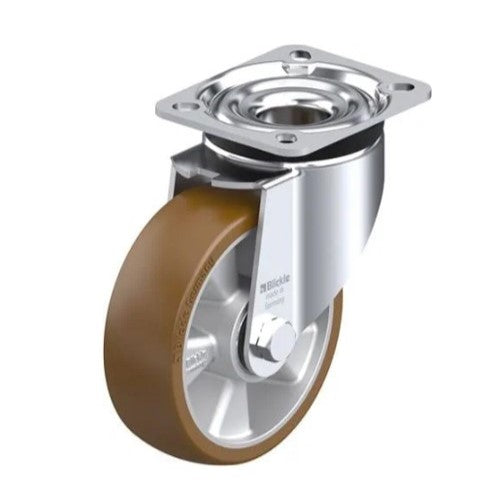 Länkhjul av pressad plåt, för höga belastningar, hjul för höga belastningar med Blickle Besthane® polyuretan-hjulbana, Med aluminiumfälg